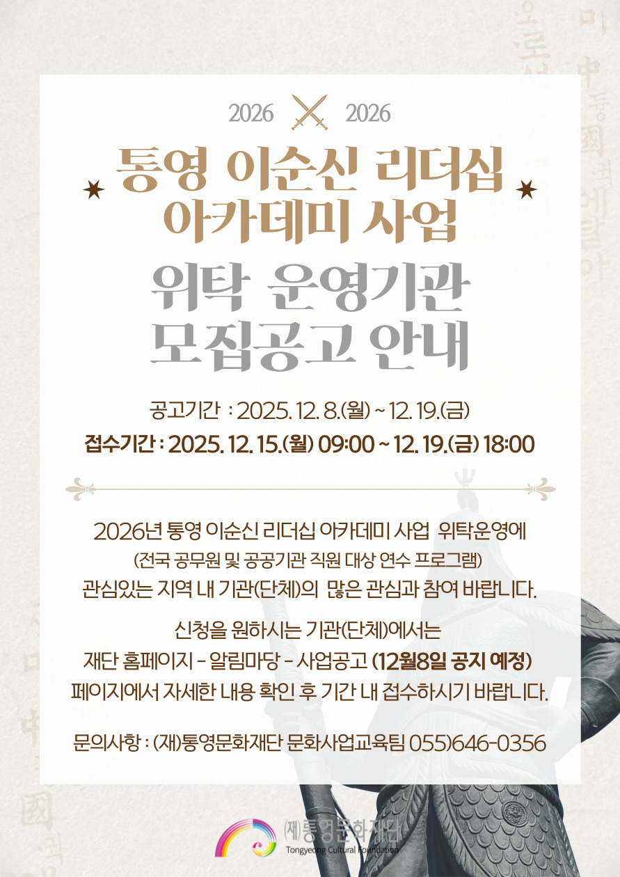 - [공고 제2025-142호] (재)통영문화재단 직원채용 서류전형 심사 합격자 및 면접시험 일정 공고2025-11-25