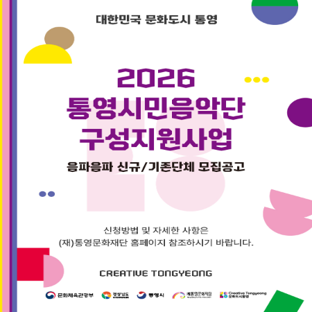 - [공고 제2026-29호] 2026 통영시민음악단 구성 지원사업 ‘음파음파’공모2026-04-03